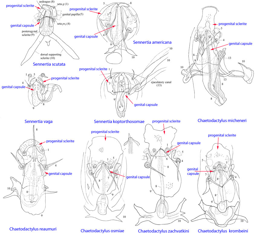 Fain, A. 1981. Notes on the hypopi of the genus Chaetodactylus Rondani, 1866 (Acari, Chaetodactylidae). Bulletin de l'Institut Royal des Sciences Naturelles de Belgique Entomologie.53: 1-9.
