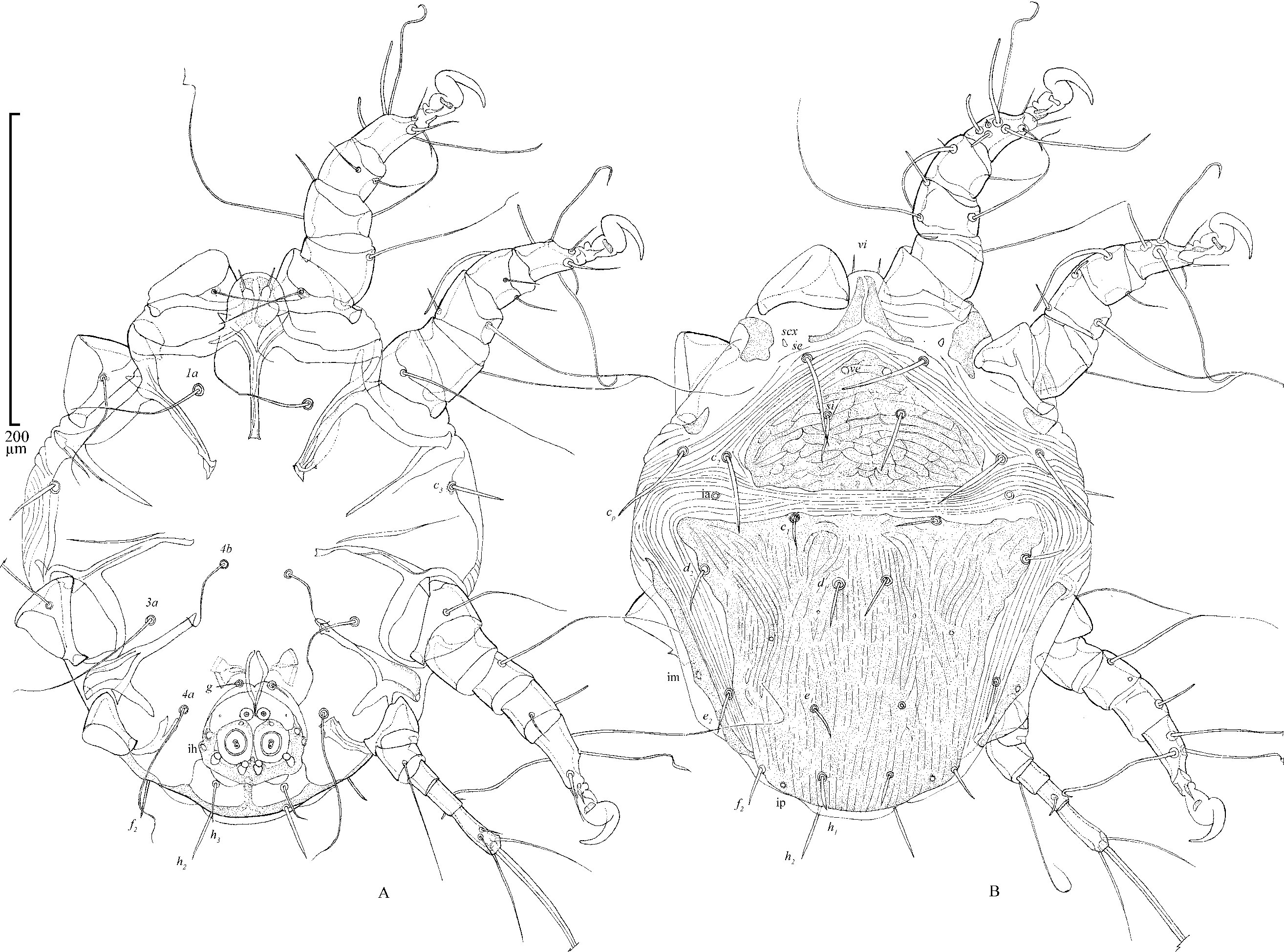 Klimov, P. B. & B. M. OConnor. 2008. Morphology, Evolution, and Host Associations of Bee-Associated Mites of the Family Chaetodactylidae (Acari: Astigmata), with a monographic revision of North American taxa. Miscellaneous Publications Museum of Zoology University of Michigan.199: 243.