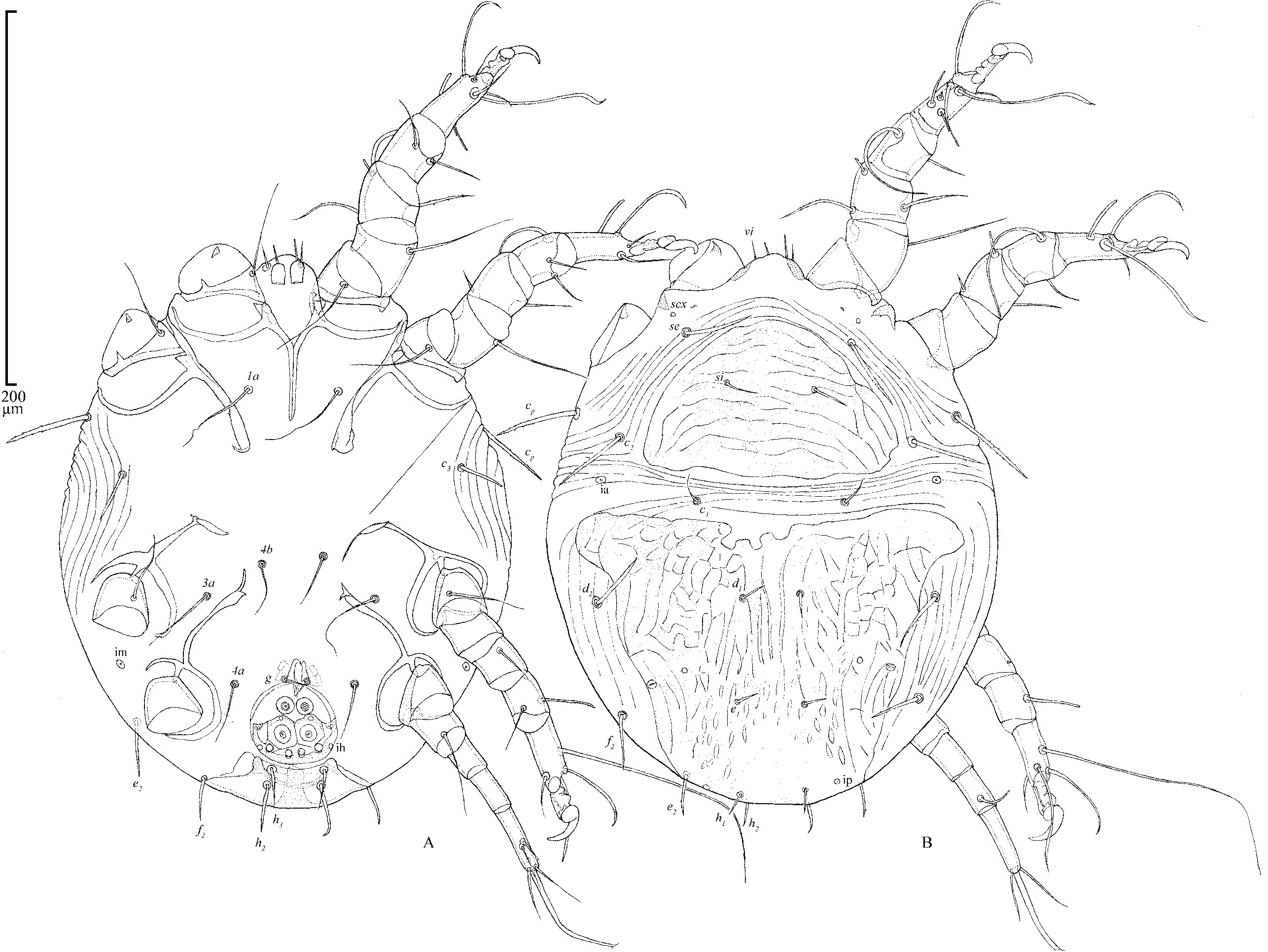 Klimov, P. B. & B. M. OConnor. 2008. Morphology, Evolution, and Host Associations of Bee-Associated Mites of the Family Chaetodactylidae (Acari: Astigmata), with a monographic revision of North American taxa. Miscellaneous Publications Museum of Zoology University of Michigan.199: 243.