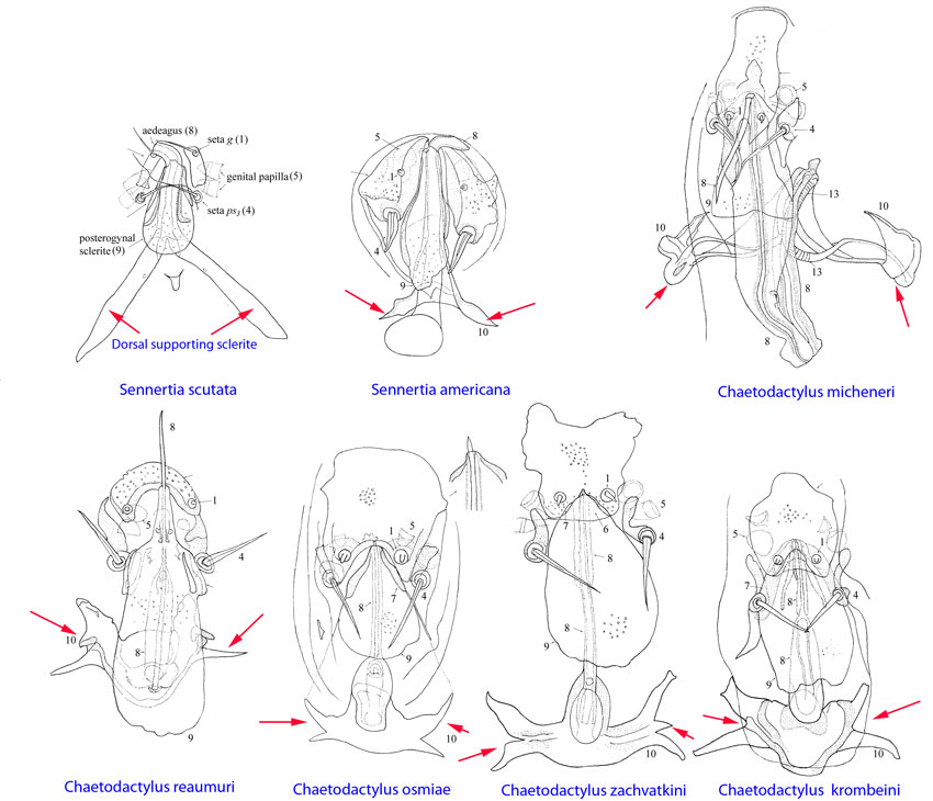 Fain, A. 1981. Notes on the hypopi of the genus Chaetodactylus Rondani, 1866 (Acari, Chaetodactylidae). Bulletin de l'Institut Royal des Sciences Naturelles de Belgique Entomologie.53: 1-9.