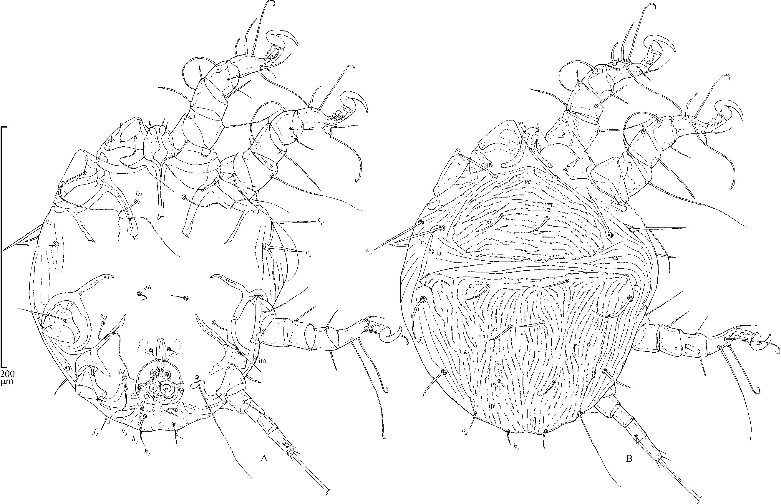 Klimov, P. B. & B. M. OConnor. 2008. Morphology, Evolution, and Host Associations of Bee-Associated Mites of the Family Chaetodactylidae (Acari: Astigmata), with a monographic revision of North American taxa. Miscellaneous Publications Museum of Zoology University of Michigan.199: 243.